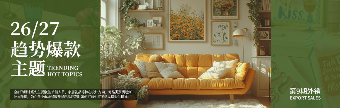 趋势研究院每月基于电商爆款大数据,结合流行趋势,精准提炼6-8个内外销主题并搭配参考图,助力获得更多创意灵感和开发方向。