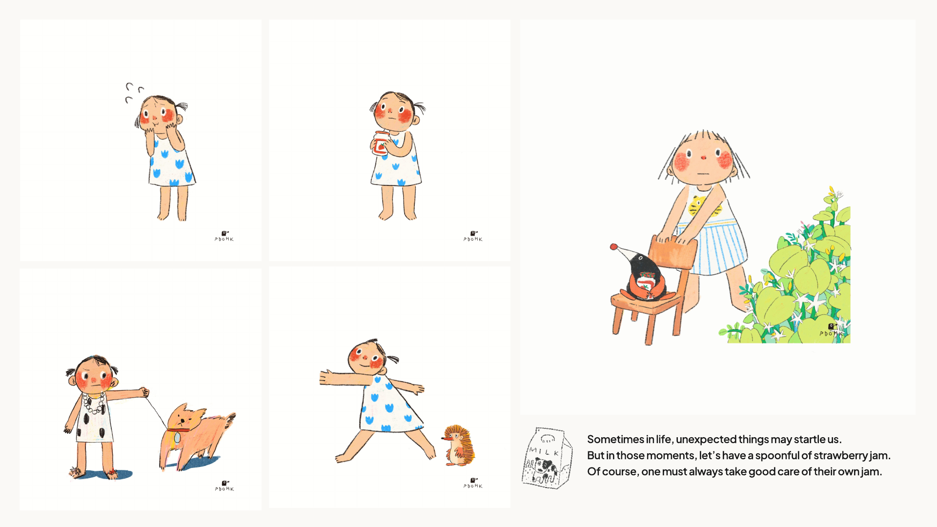 来自韩国首尔的艺术IP,插画风笔触,打造出小女孩与朋友的日常冒险世界。其独特风格,治愈人心。