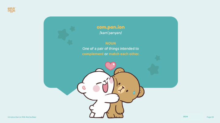 该IP由两个主要角色组成:Milk(牛奶)和 Mocha(摩卡)组成,围绕“伴侣”这一核心概念构建,代表一对伙伴关系。它们可以是伴侣、情侣、朋友或伙伴,通过互补的性格和特质,彼此成就,其价值在于能够让用户将自己与伴侣的关系投射到角色身上,引发情感共鸣。