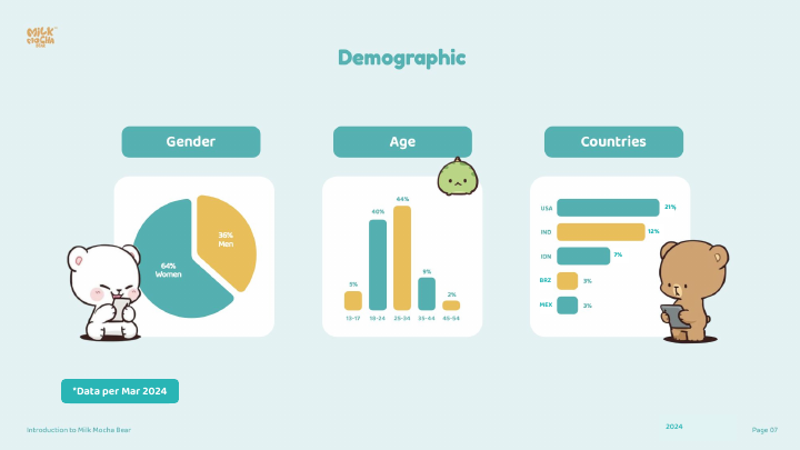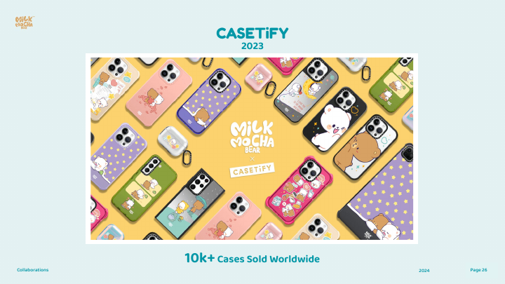 1.情感定位精准: “伴侣”概念具有普世性,能深度连接全球不同文化的用户。 2.数据表现强劲: 拥有数百万全球粉丝和数百亿次的数字内容浏览量,证明了其巨大的线上影响力和吸引力。 3.商业变现成功: 年销售额达数百万美元,且增长迅速(超30%),拥有健康的客单价和回头客率。 4.全生态布局: 从数字贴图到实体商品、漫画书,构建了完整的内容与商业闭环。 5.已验证的联名能力: 已与Casetify、联合利华等国际知名品牌成功合作,具备成熟的IP授权与联名经验。 6.坚实的粉丝基础: 拥有一个以年轻男性为主但分布广泛的、具有高参与度和消费力的粉丝群体。